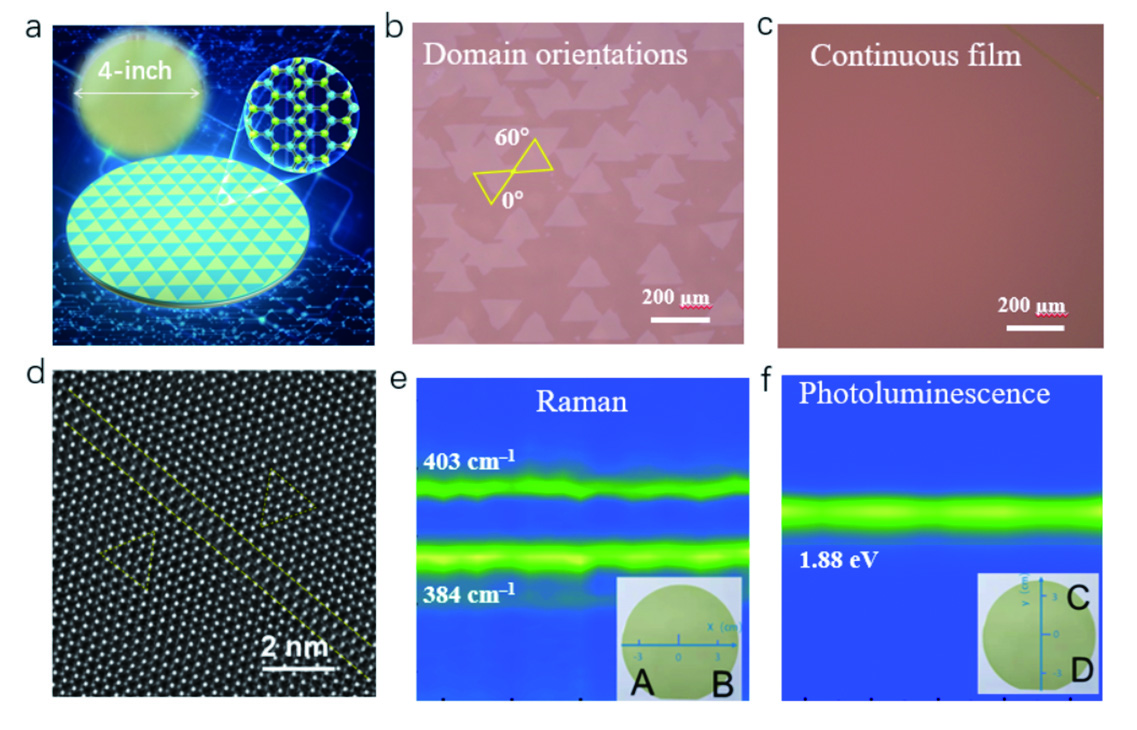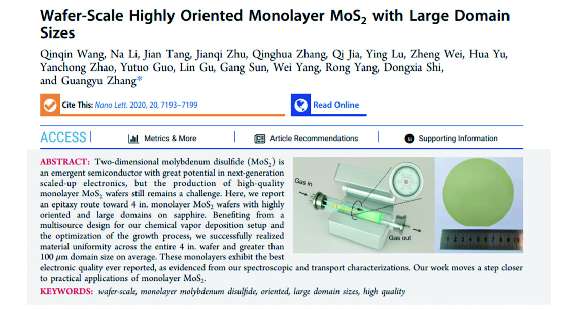 二/四英寸連續(xù)單層MoS2的取向外延生長(zhǎng)