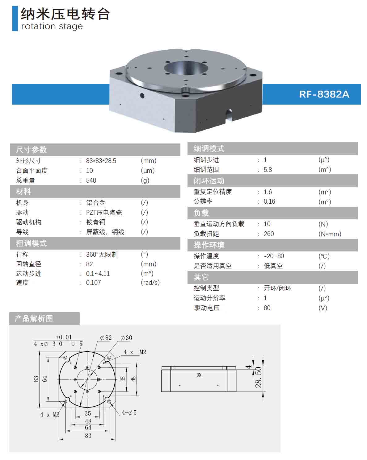 壓電旋轉(zhuǎn)納米位移臺RF-8382A技術(shù)參數(shù)