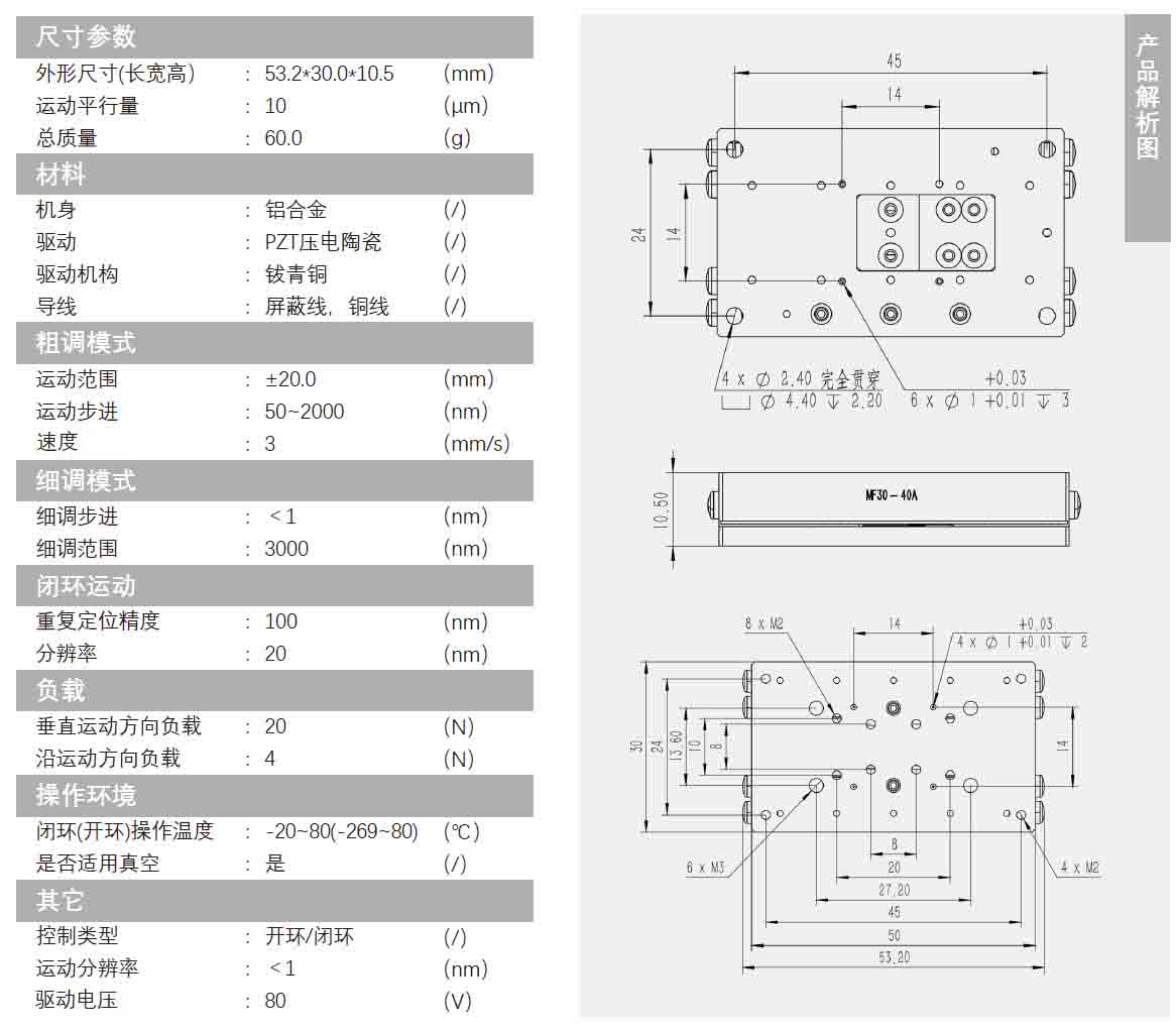 線性壓電位移臺(tái)-MF系列 MF30-40A技術(shù)參數(shù)